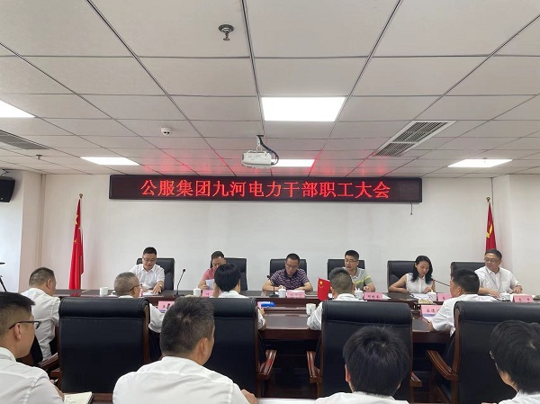 7月1日,公司召开干部职工大会。公服集团公司党委书记、董事长杨中才同志,党委副书记邓彬岑同志,党委委员、纪委书记、工会主席叶勇同志,党委委员、副总经理黄灵同志出席会议。会议由集团公司党委委员、副总经理黄灵同志主持,新任职干部牟永立同志,九河电力班子成员、中层及以上管理人员参加会议。