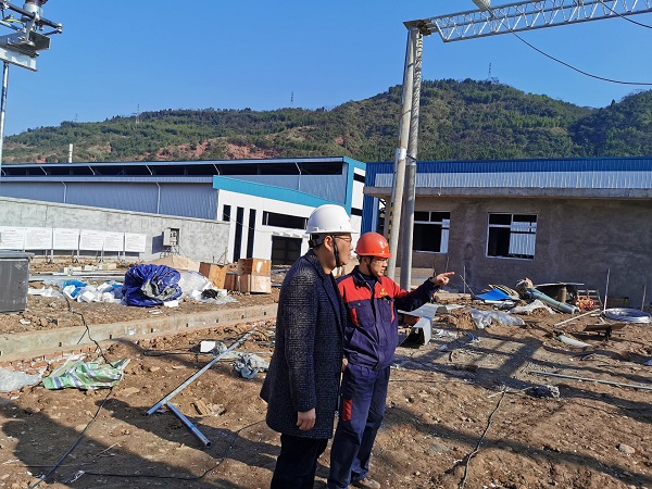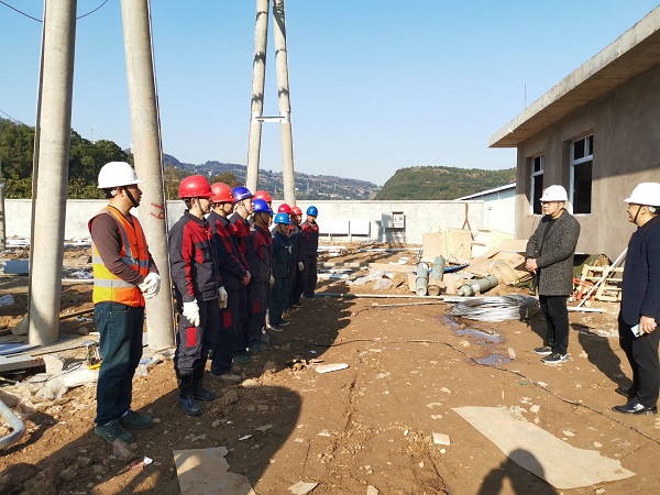 2020年1月11日公司党总支副书记、总经理陈飞,副总经理胡德雄,总工程师滕鹏一行亲临水富中晟能源有限责任公司110kV变配电工程施工现场进行安全专项检查。重点对施工作业现场安全文明施工、组织管理、设备管理、质量管理、资料管理等情况进行了详细了解和检查,与工地现场员工亲切交流,了解员工们在工地的工作、生活情况,召开了现场安全例会。