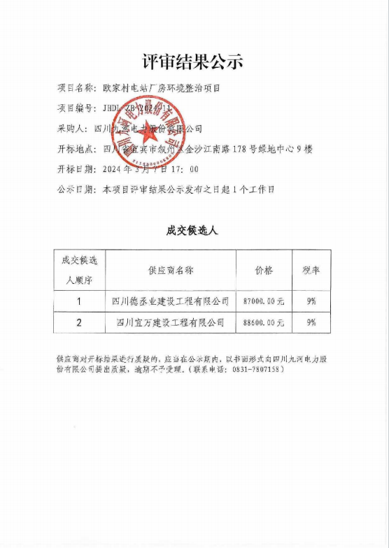 欧家村电站厂房环境整治项目评审结果公示