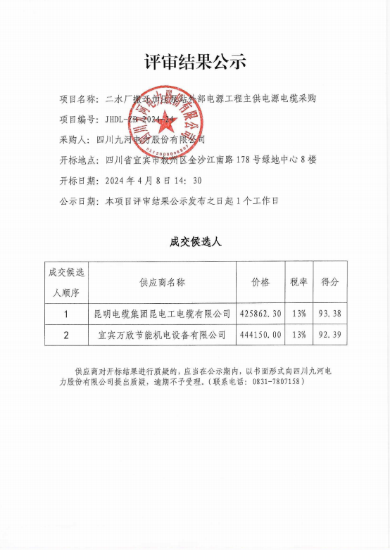 四川九河电力股份有限公司合作供应商(第二批)征集入库项目招选公告