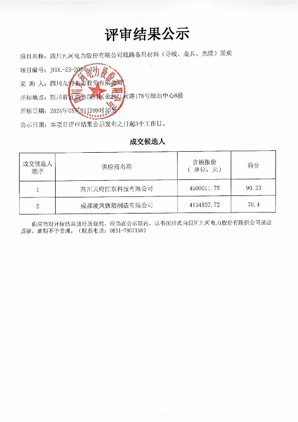 四川九河电力股份有限公司合作供应商(第二批)征集入库项目招选公告