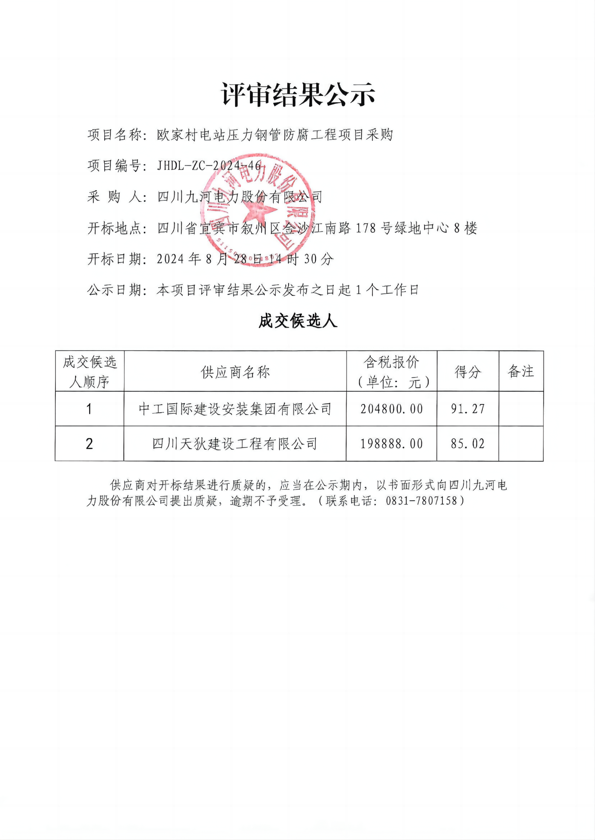 四川九河电力股份有限公司关于办公用品采购供应商的邀请函(第二次)