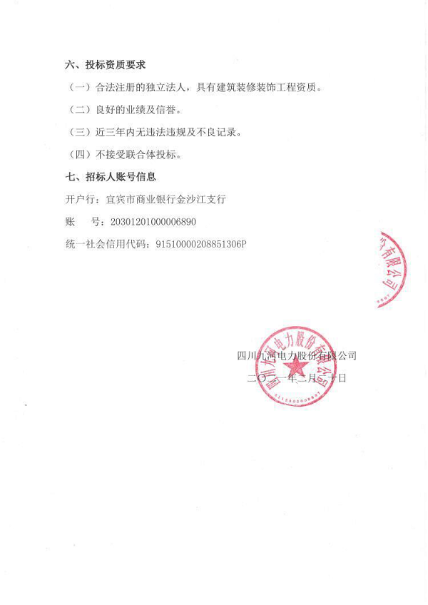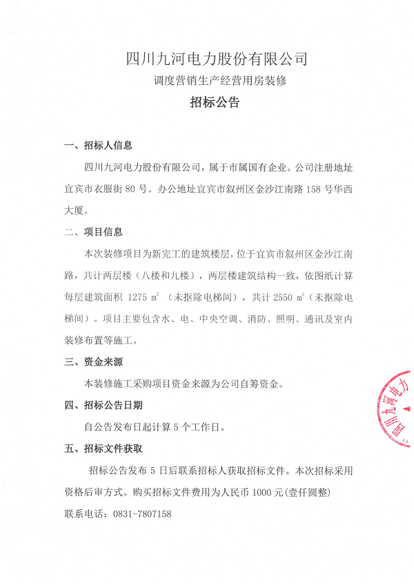 四川九河电力股份有限公司关于办公用品采购供应商的邀请函(第二次)